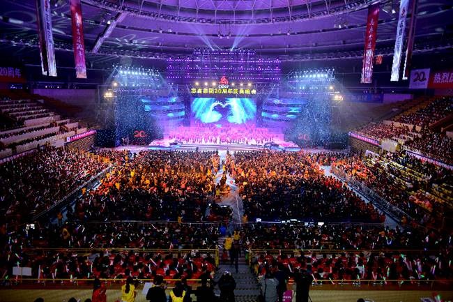 2013年12月18日,志高上下洋溢著喜慶祥和的氛圍。室外雖然寒風刺骨,但在佛山嶺南明珠圓形體育場內,全球的志高供應商、經銷商、協會組織代表及志高員工等八千余人相聚一堂,他們身著印有“志存高遠20年”標志的紅色風衣及手中揮動的彩棒徹底喚醒了這個冬天的激情。在一片紅色熱流涌動中,志高20周年慶典晚會拉開序幕。