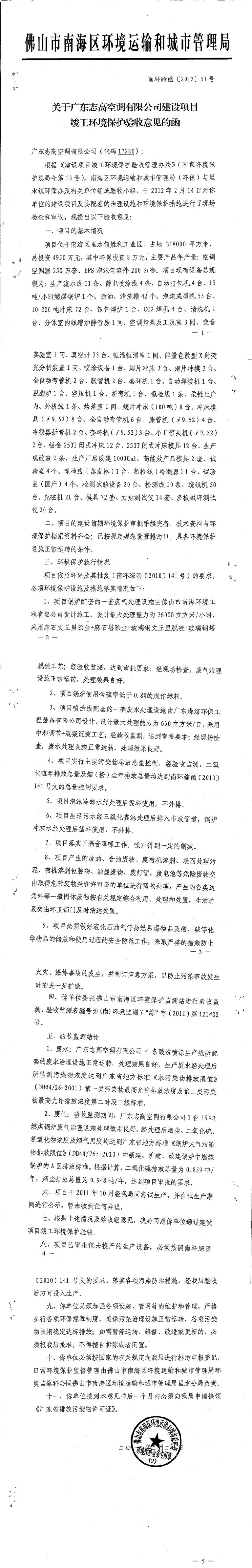 安全環保資料公布-建設項目竣工環境保護驗收意見函